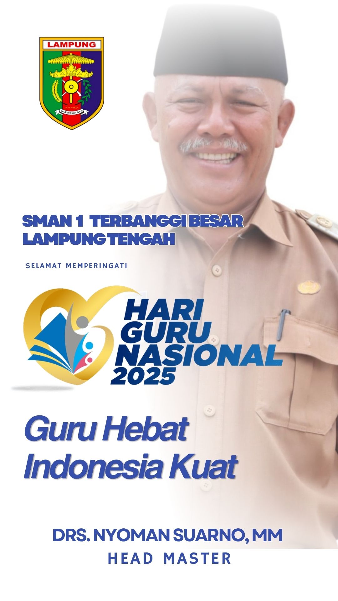 Terbanggi Besar, Jpl.news – Dalam rangka memperingati Hari Guru Nasional yang jatuh pada tanggal 25 November setiap tahunnya, Kepala Sekolah Menengah Atas Negeri (SMAN) 1 Terbanggi Besar, Lampung Tengah, Drs. Nyoman Suarno, MM menyampaikan ucapan selamat dan apresiasi yang mendalam kepada seluruh guru di Indonesia, khususnya para pendidik di SMAN 1 Terbanggi Besar.