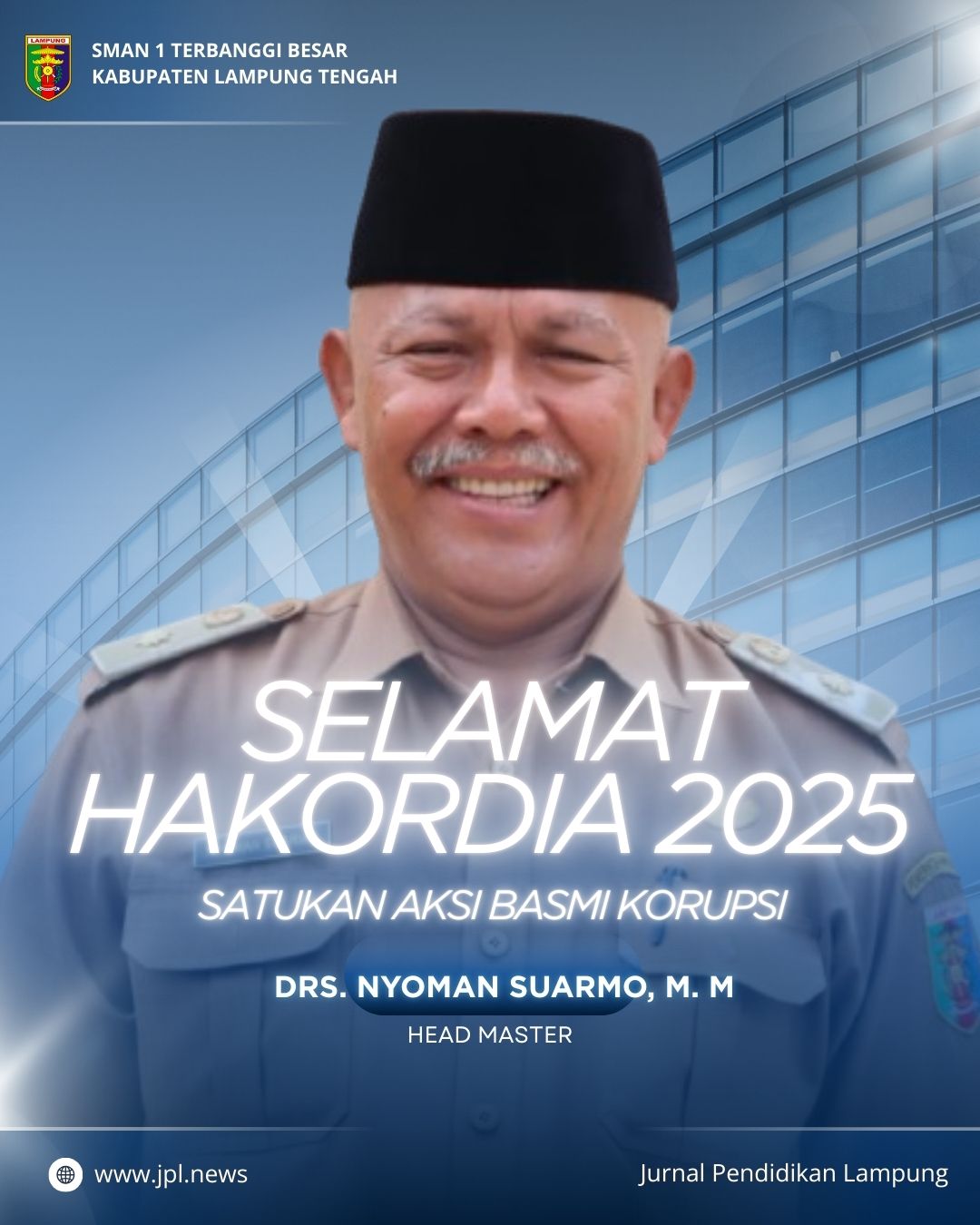 Dalam semangat memperingati Hari Antikorupsi Sedunia (Hakordia) tahun 2025, keluarga besar SMA Negeri 1 Terbanggi Besar Kabupaten Lampung Tengah menyampaikan ucapan:
